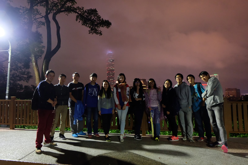 2015年12月14日傍晚六點于傅鐘集合,由體育部部長帶隊途經臺科、101世貿中心等地安全抵達象山腳下。