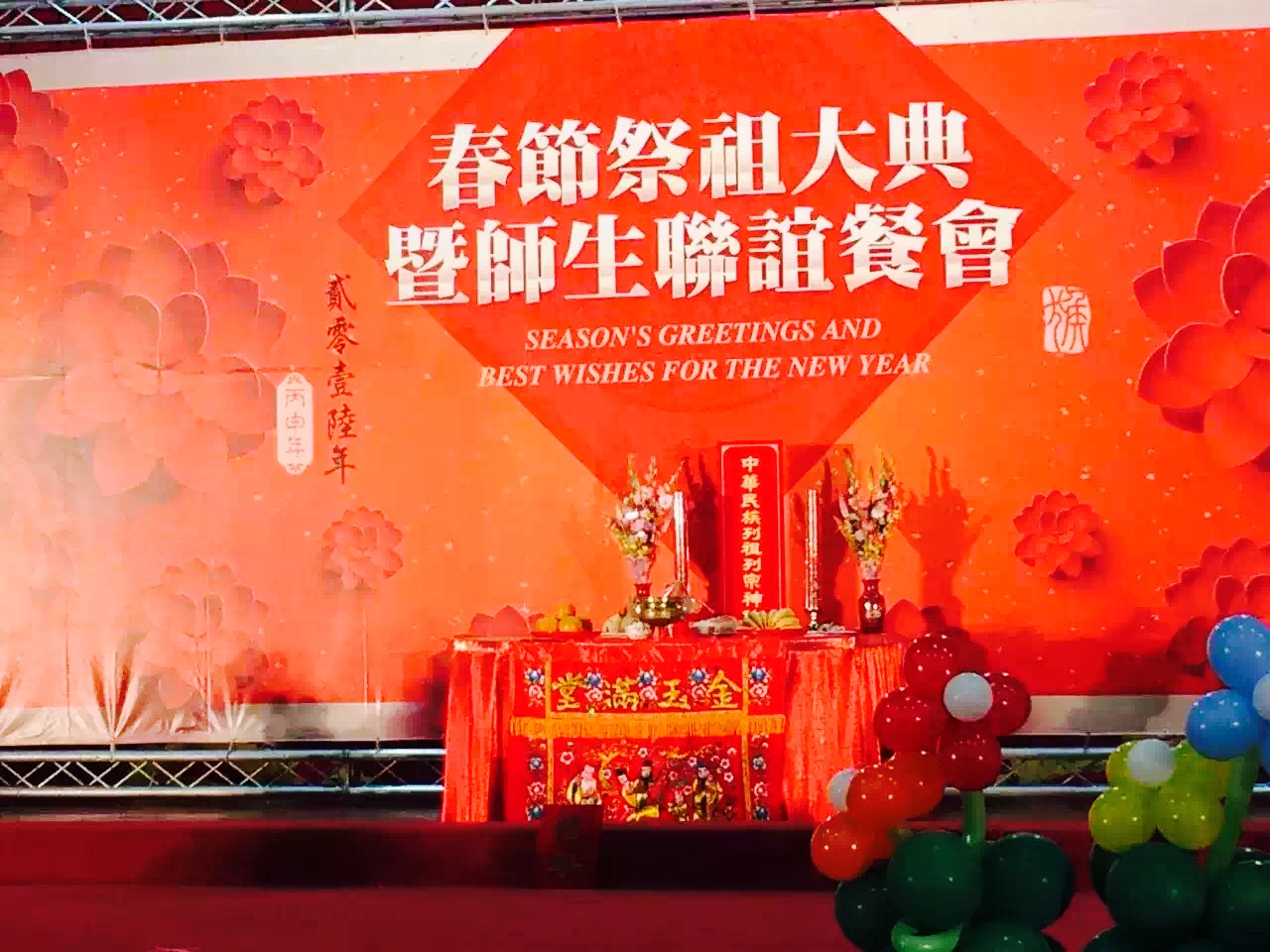 本校每年於歲末舉辦祭祖大典,遵照古禮進行,由學校師長暨教育部、僑委會、貴賓帶領僑陸生參與祭拜祖先的儀式,一方面可以藉此閒話家常、互道新春愉快,另一方面也可以彰顯道德精神、傳達關懷社會的重要意義。