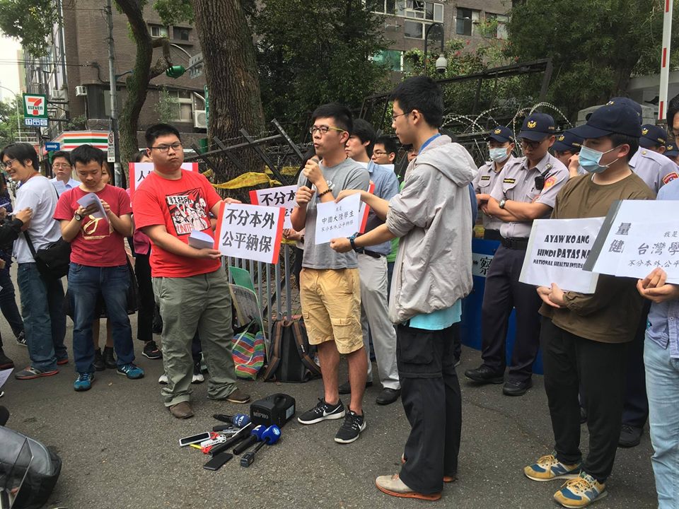 國立台灣大學大陸同學會於2017年5月2日到立法院前參加境外學生權益小組記者會,就健保問題發表申明稿,內容如下: